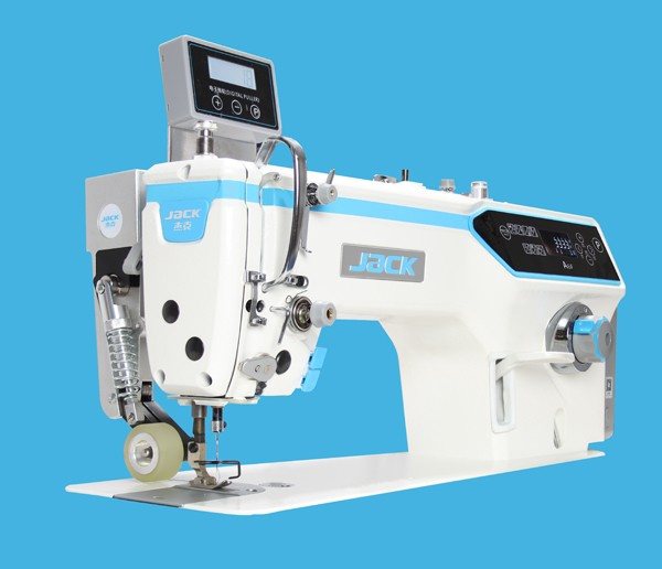 Eennaald, naaldtransport naaimachine met puller. De jack A6F heeft een energie zuinige, ingebouwde servomotor. De werkruimte onder de arm is 30cm.